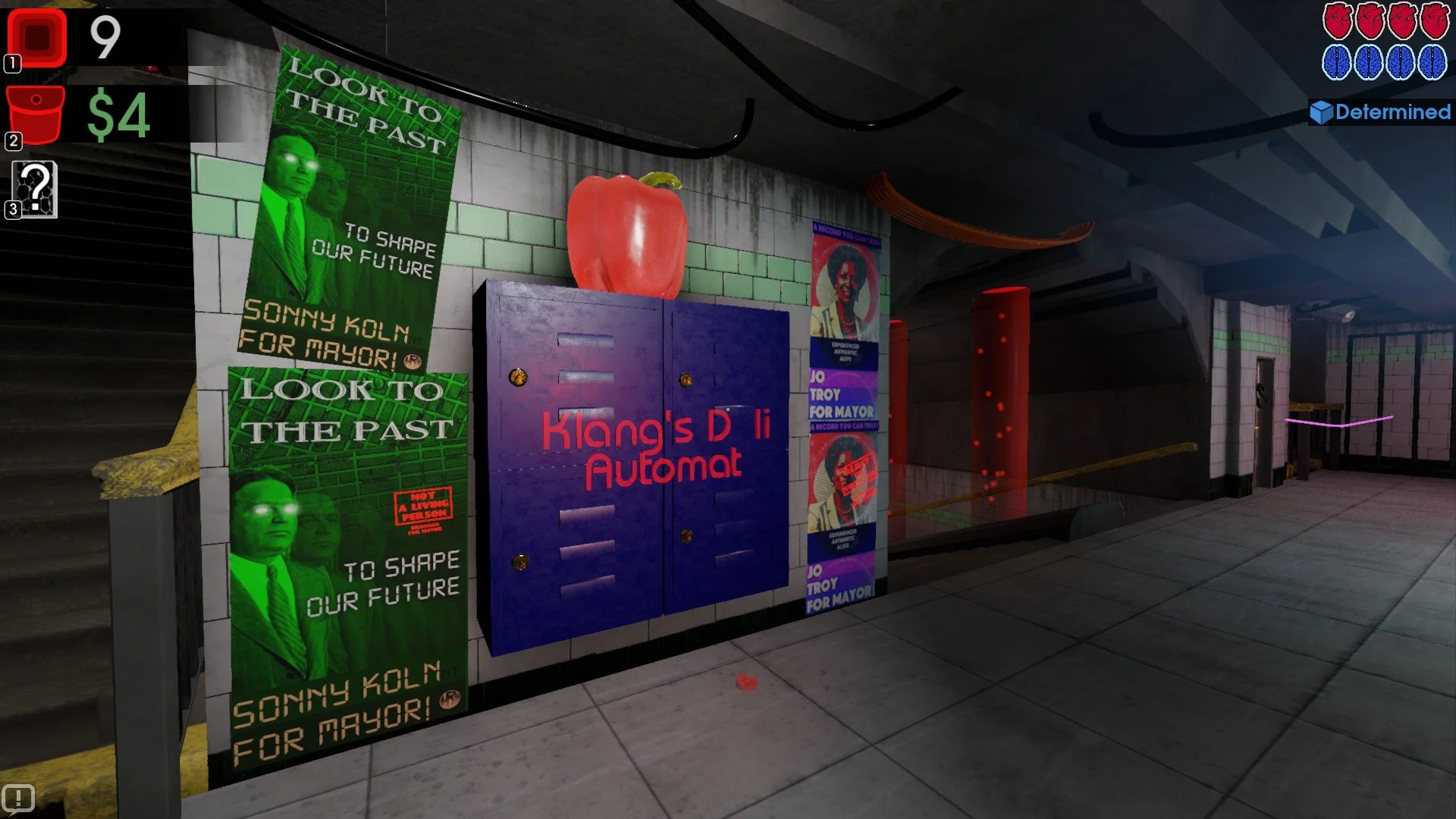 This is something I’ve stated for a long time in regards to Cosmo D’s games: that, despite their wackiness, they carry nuggets of truth, honest reflections of our real world. You can smell it in Moves of the Diamond Hand once you get a whiff of the political backdrop. Your own quest for performance art greatness intersects with a mayoral race for the ages and a daring power-play set by the mysterious Diamond Hand, a secretive figure who has his hands in many pockets (we are all pawns in the Big Board Game he is playing). There’s no absence of political scandals, poverty, and desolation in Off-Peak City. Art professors have to quit their jobs and become train engineers in order to scrape a living together; musicians busk in underground train stations to secure enough tips for their next meal. For their part, police officers use their authority to prevent exit from the Station, harassing the denizens until one of them coughs up a stolen Jade Sax.