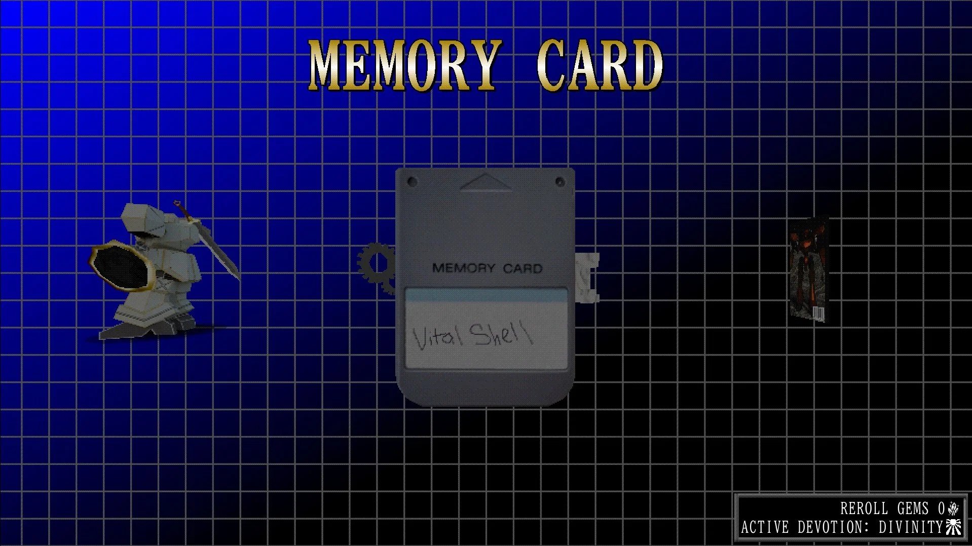 Immediately players are hit with a choral noise and static startmenu. It breaks into a rotating, ring-based menu calling back to things like Tomb Raider or Ape Escape. The save icon is not an abstract floating glyph or even the hallowed Floppy Disc, but a Playstation Memory Card. It’s a small touch. There are many games keyed to this graphical style released in constant deluge on itch.io, but I’ve not seen many specifically call back nostalgic memory that weren’t doing so out of irony to create horror.