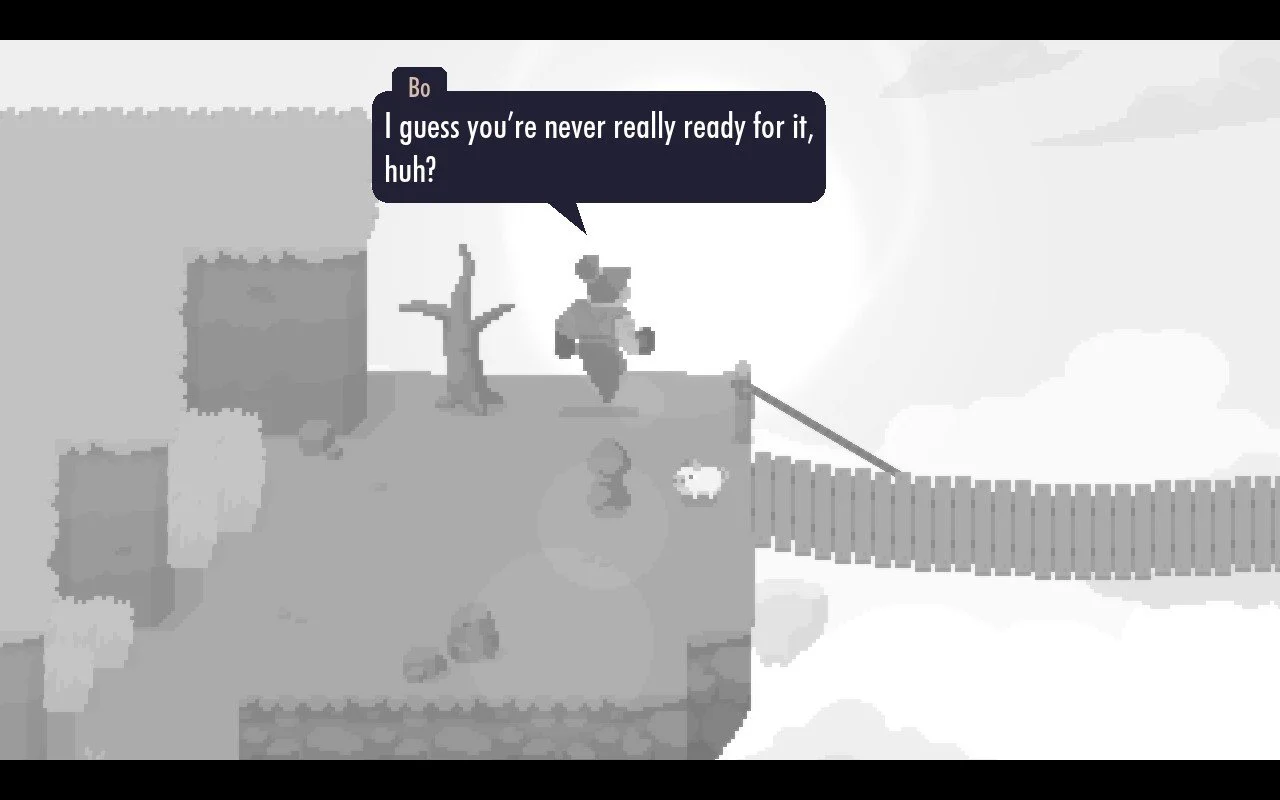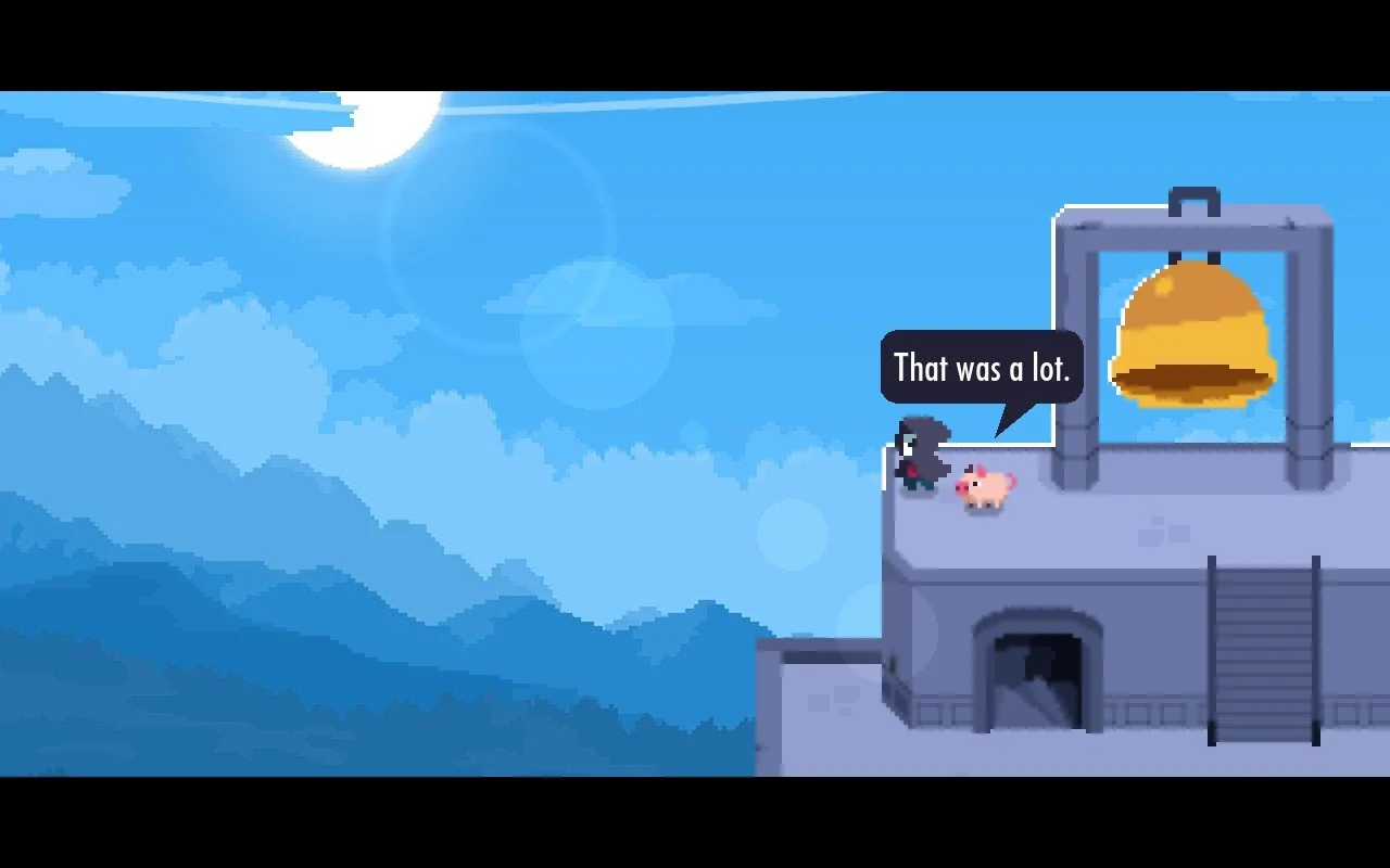 There are a few niggling issues that detracted slightly from the experience. There is a certain imprecision to its controls that causes movement to feel overly light at times. One sequence with an instant death mechanic is made frustrating by this floatiness. It's also easy to “slide” off of a rock that you're pushing, or accidentally push it into the water. There is a lot of rock pushing in Spindle, including one instance that requires an unusual amount of precision. Additionally, Dengel must be very close to people, especially Pig, to talk to them. This makes sense in combat because “talk” is also “roll", but is annoying any other time. At one point, dying with a critical item in hand caused my game to softlock, but this issue has since been resolved according to patch notes. Also, I couldn't pet the alpacas at the alpaca petting farm