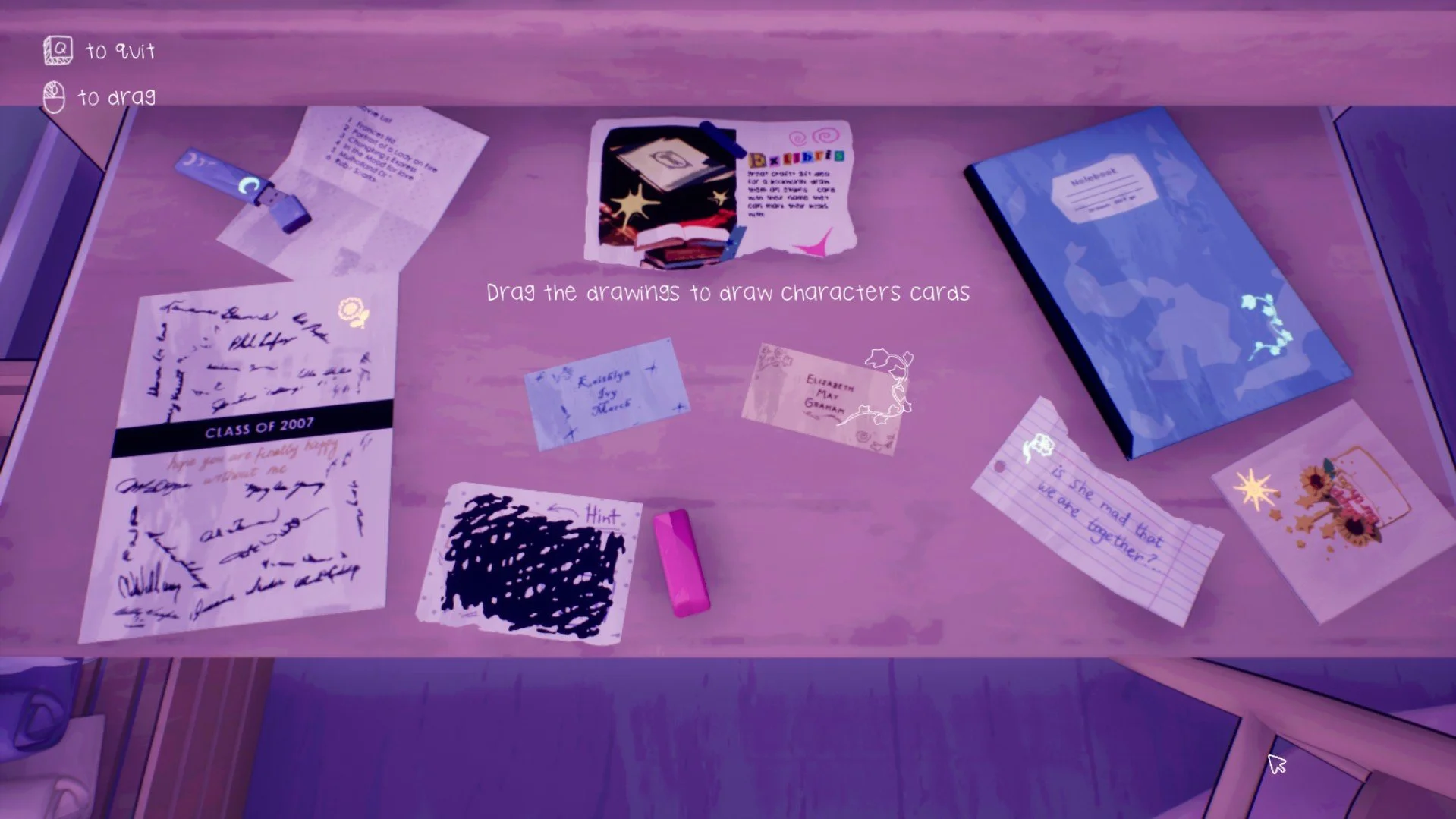 Sure, all of that media paints a clear picture of who they are — less anachronistically, a character keeps her copy of Perfect Blue under lock and key, along with a post-it reading “STOP REWATCHING IT!!” — but the real-world signposts muddle the setting. (It is also terribly lazy writing to just make me consult a list of bibliographical references in lieu of doing any character exposition that stands on its own. I shouldn’t have to do so much required reading for a 2- to 3-hour game, and you’re not giving me anything original to chew on. For the record, there was even more of this stuff in the demo; at least they’ve had the decency to cut some of it out.)