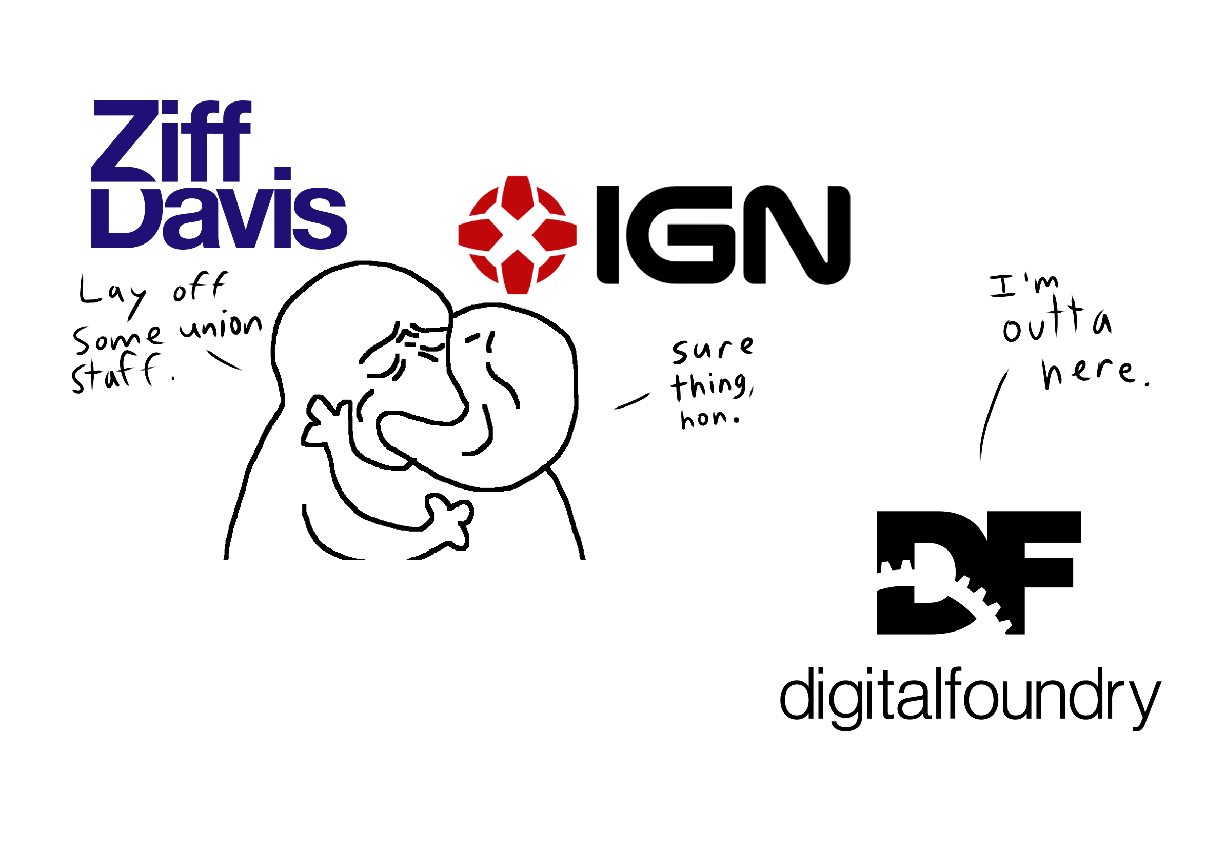 DISCLAIMER: This is a satirical dramatisation of this week’s news and does not accurately depict the amicable departure of Digital Foundry from IGN, nor precisely depicts the communication line between Ziff Davis and IGN regarding cost-cutting measures.